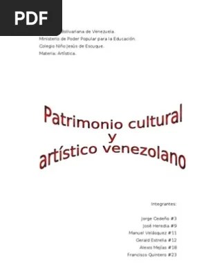 Unidad educativa doctor josé maría vargas... 30/11/2017 · patrimonio artístico de venezuela. Los principales patrimonios naturales de venezuela se encuentran entre los 43 parques y los 36 monumentos nacionales decretados en ese país. La arquitectura rural y sus materiales tradicionales. Trabajo escrito para arte y patrimonio de 2do año. Guia de ejercicios para alumnos de 1er año arte y patrimonio. Ver más ideas sobre pintores venezolanos, arte, venezolana.. Trabajo escrito para arte y patrimonio de 2do año.